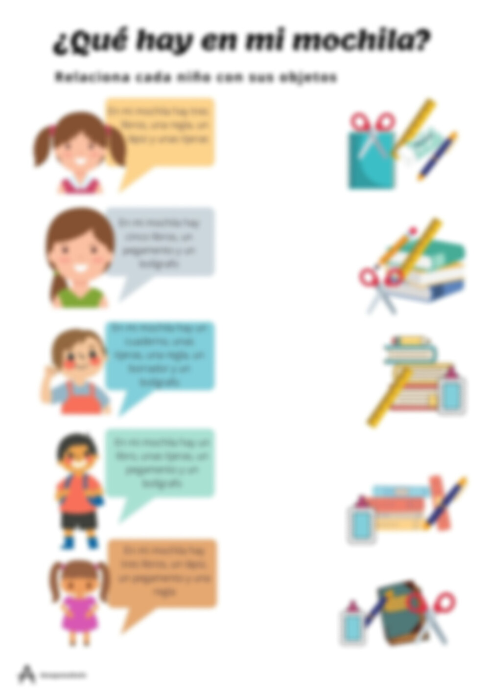 Cuatro actividades para aprender y practicar el vocabulario de los objetos del aula.